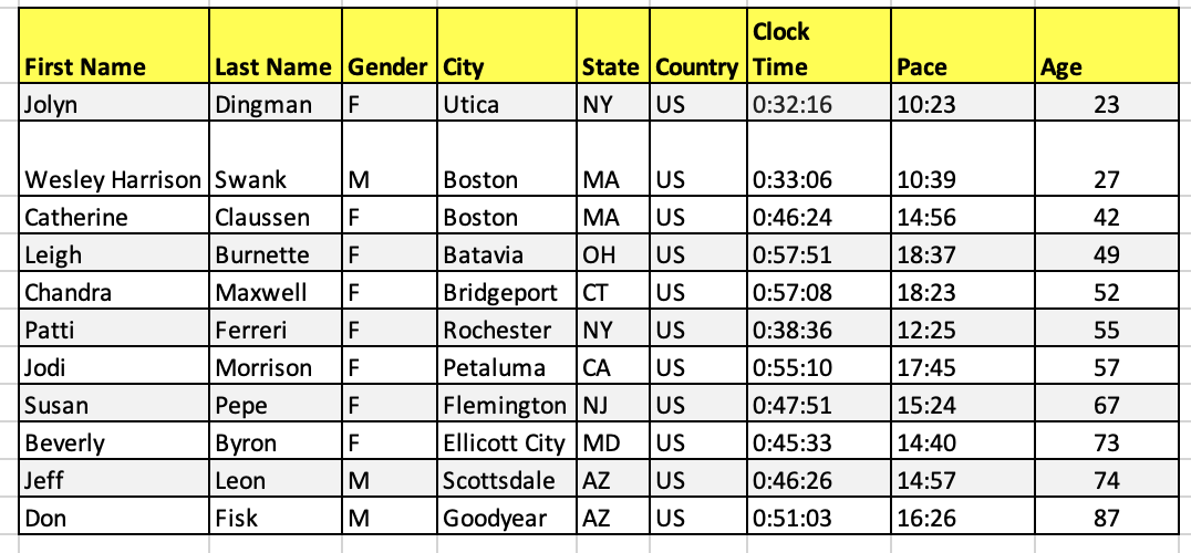 Not everyone posted their results, but here are the few who did. Contact me if you need them posted.