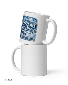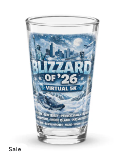 Thanks to everyone who registered and picked up the super-cool shirt design—one that will have your running friends scratching their heads for years! And if you really want to remember this event, we’ve created a Blizzard of ’26 Shaker Pint Glass and some Blizzard Coffee Mugs. Admittedly, the shipping cost is expensive; but the memories will linger into the summer. Created for those who haven’t had enough of the Blizzard of ’26 …